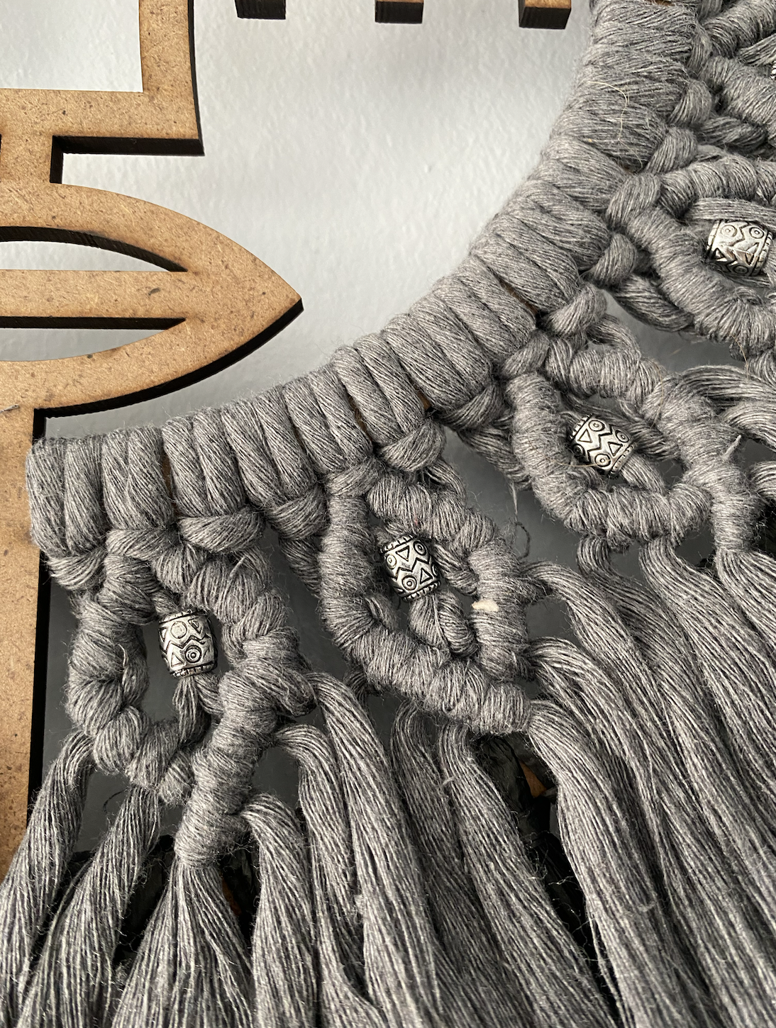 Bohem Shop El Yapımı Kadın Figürlü Etnik-bohem Makrome Yapraklı Duvar Süsü Duvar Dekoru Siyah Gotik