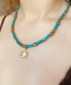 Doğal taşlarla dizili güneş bohem hippie altın gold kolye tasarım kolye kararmaz
