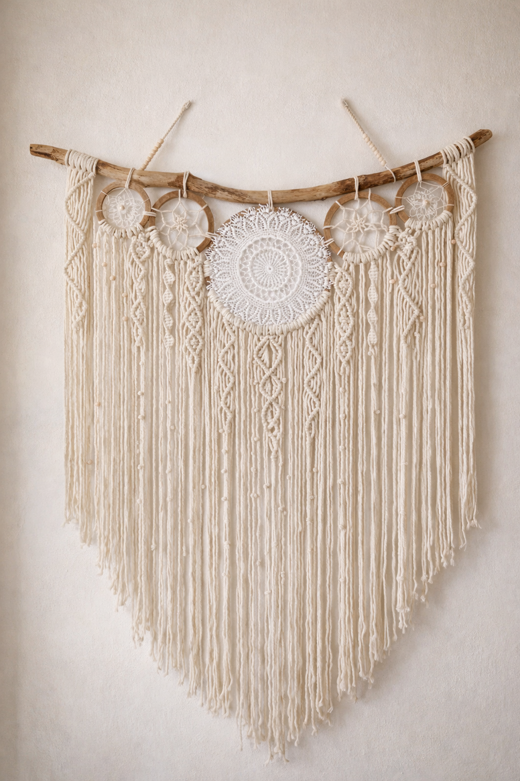 El Yapımı Bohem Dantelli Dev Boy Duvar Süsü, Etnik Yazlık dekorasyon – Rustik Ev Dekor