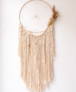 El Yapımı Büyük Boy Makromeli Düş Kapanı Duvar Dekoru – Kuru Çiçek Detaylı