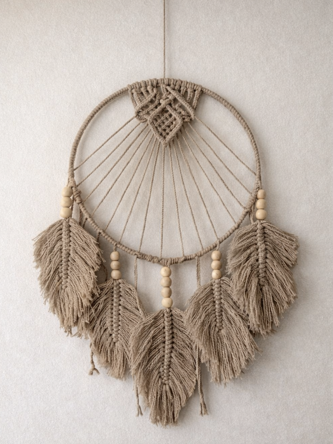 El Yapımı Izlanda Stili Makrome Düş Kapanı/yapraklı Rüya Kovucu- Bohem Shop