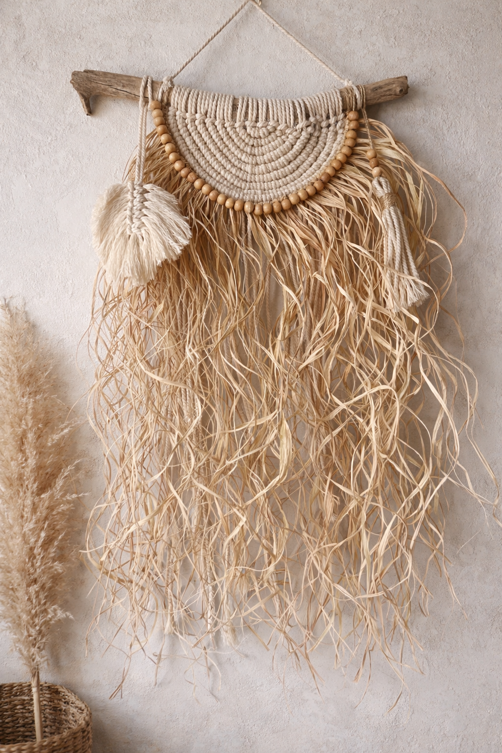 Orta Boy Makrome Rafya Yapraklı Bohem Hasır Etnik Duvar Dekoru- Bohemshop